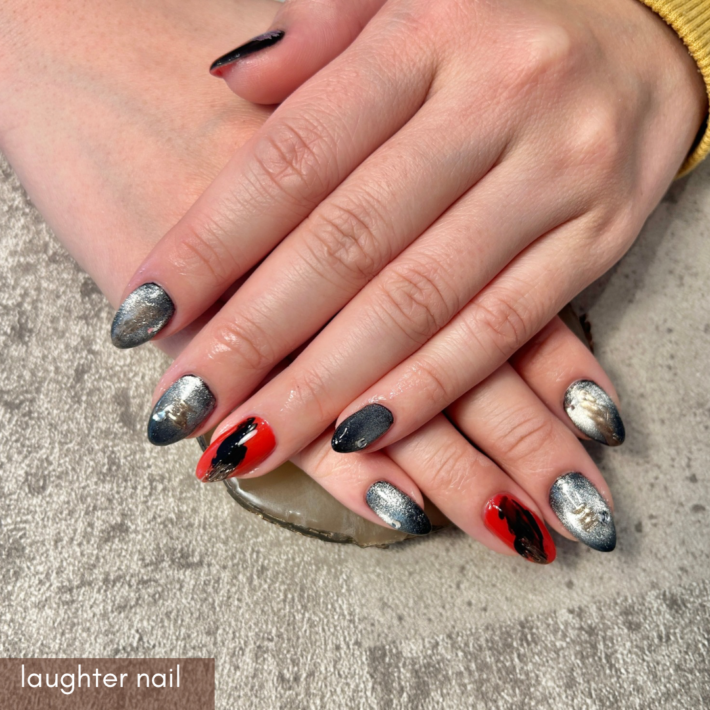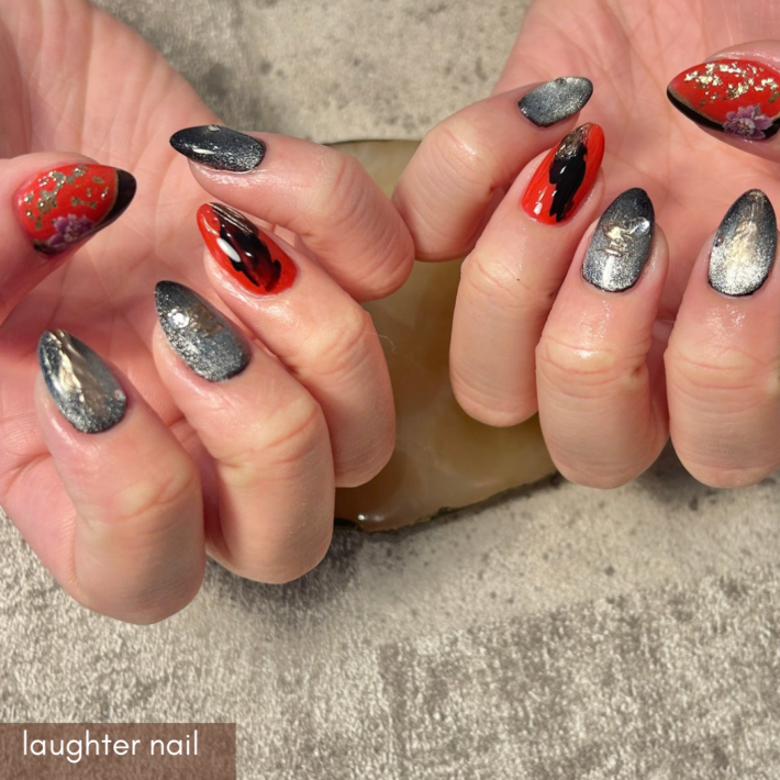和柄ネイルデザイン #黒ネイル #秋冬ネイル #マグネットネイル #定額ネイル 色変更可 大人ネイル ジェルネイル ジェルアート ジェルネイルデザイン ジェルデザイン 美容 和光市 和光 和光市駅 和光市ママ 和光市ネイル 練馬 板橋 朝霞 キッズスペース完備 こどものいる暮らし 駐車場あり